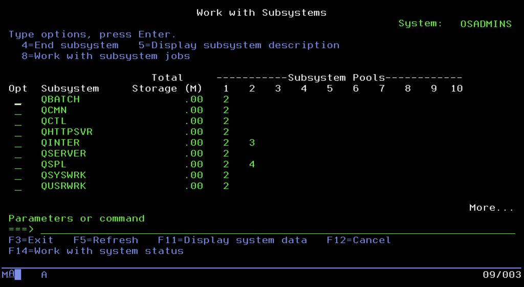 The world of tasks is divided into two main spheres. The first is Interactive, meaning sessions of users working on 5250 terminals, requiring immediate reaction. The second is Batch, powerful batch processing processes that crunch data in the background, usually at night, without requiring human interaction. To keep these two worlds from getting in each other’s way, and to prevent one user generating a report from blocking the work of the entire office, IBM engineers invented Subsystems. These are virtual containers, separated zones of memory and processor, in which tasks are run. Typically, interactive users go to the QINTER subsystem, where reaction time is the priority, while heavy background tasks land in QBATCH, where they are queued and processed one by one. The whole thing is usually overseen by the controlling subsystem QCTL, which is the operational brain of the machine.