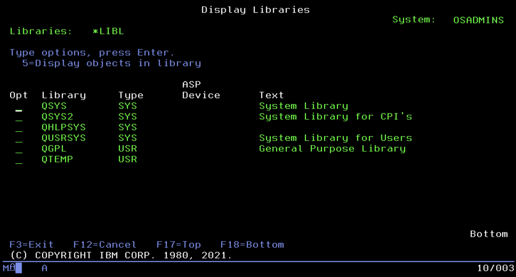 You can think of it as a much more advanced equivalent of the %PATH% variable from Windows or $PATH from Unix systems. It is an ordered list of places the system searches automatically when we call a program or open a file without indicating its specific address. Order is key here. The system always begins the search from the system part (where IBM tools are), then looks into the so-called Current Library, and finally scans the user part, where our applications reside.